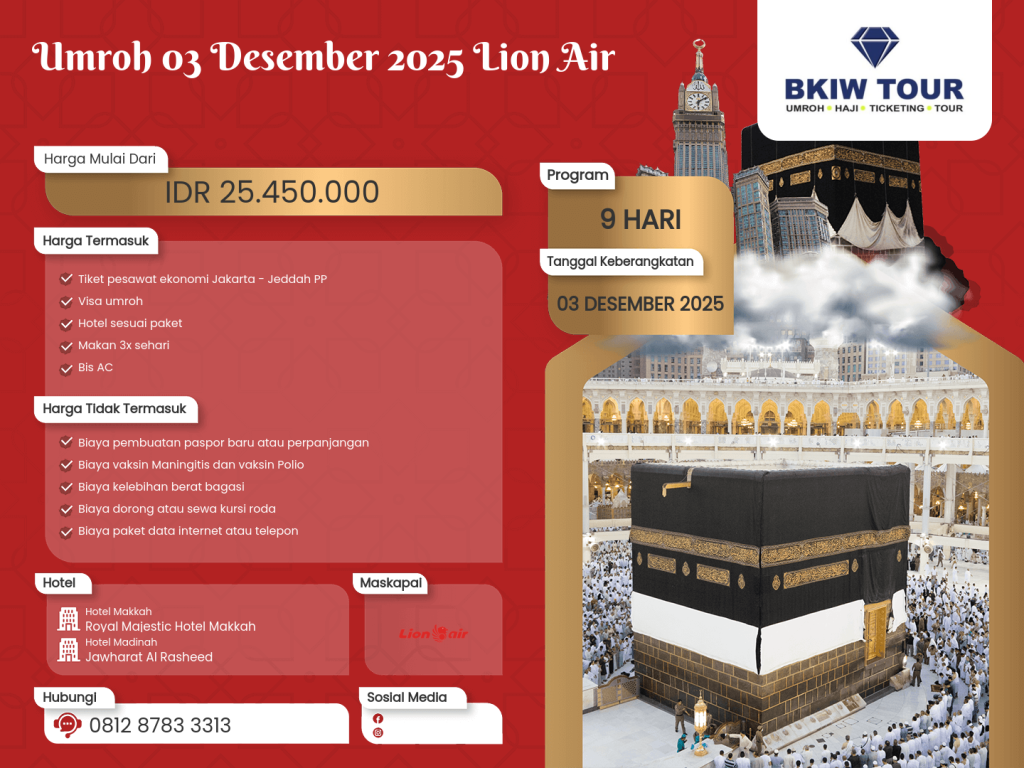 ▪️ Pelunasan paling lambat 1 (satu) bulan sebelum keberangkatan, setelah melewati batas maka semua biaya yang sudah dikeluarkan tidak bisa dikembalikan.