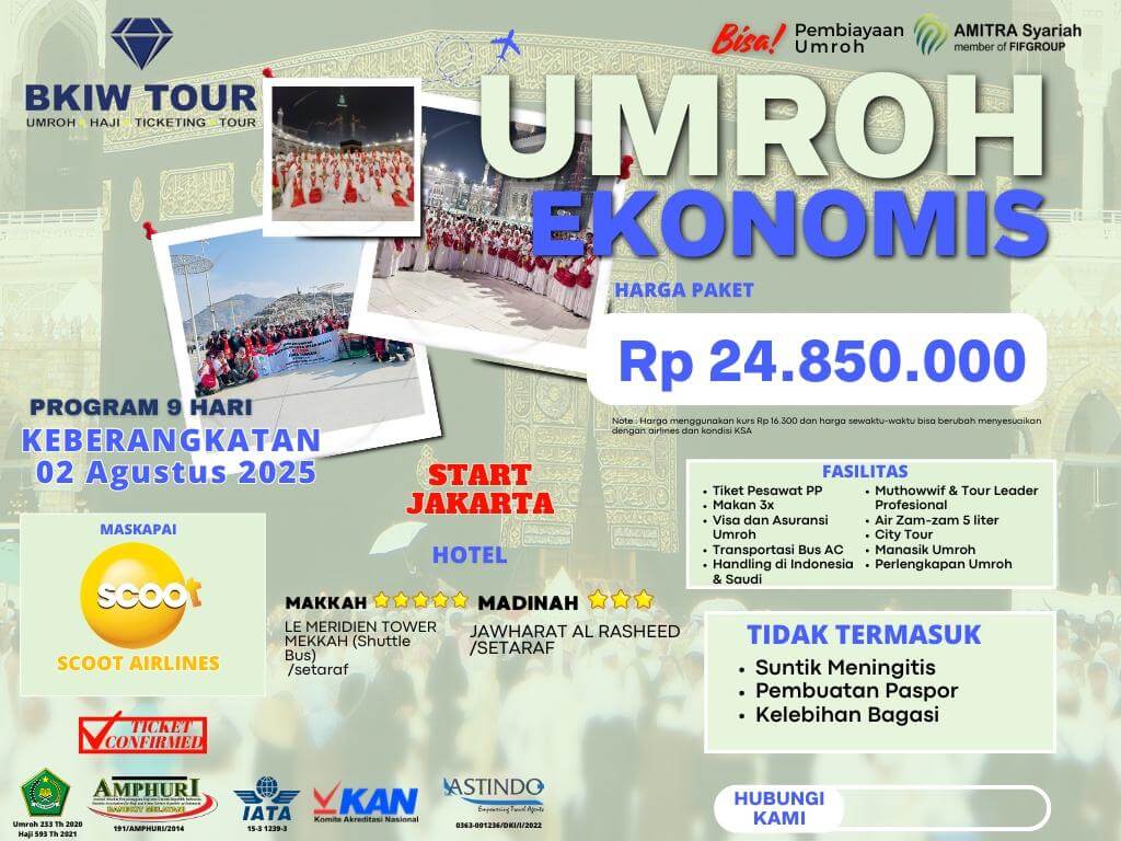 ▪️ Pelunasan paling lambat 1 (satu) bulan sebelum keberangkatan, setelah melewati batas maka semua biaya yang sudah dikeluarkan tidak bisa dikembalikan.